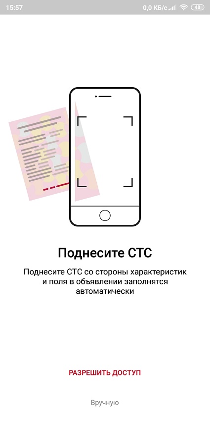 - Добавив фотографию СТС (СОР) приложение автоматически заполнит основную информацию;