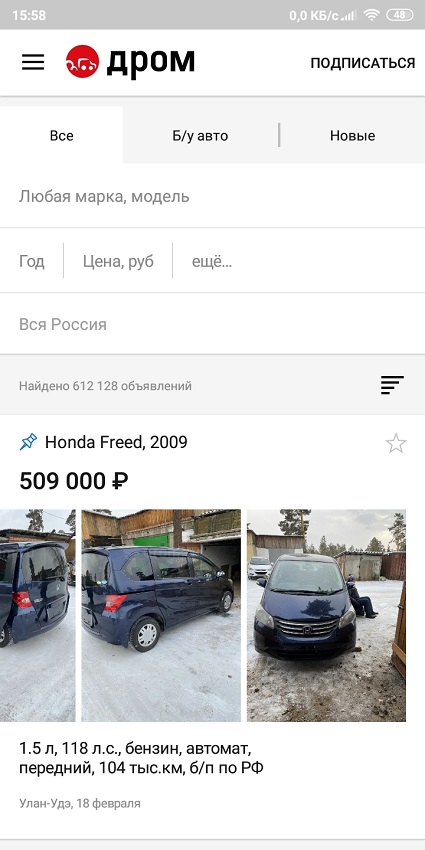 Дром (Drom) – это официальное приложение известного в России автомобильного портала для смартфонов и планшетов на платформе iOS и Android, благодаря которому можно приобрести подержанные и новые автомобили, мотоциклы, грузовики, спецтехнику и водный транспорт. Помимо транспорта через программу можно покупать отдельно запчасти, видеорегистраторы и шины.
